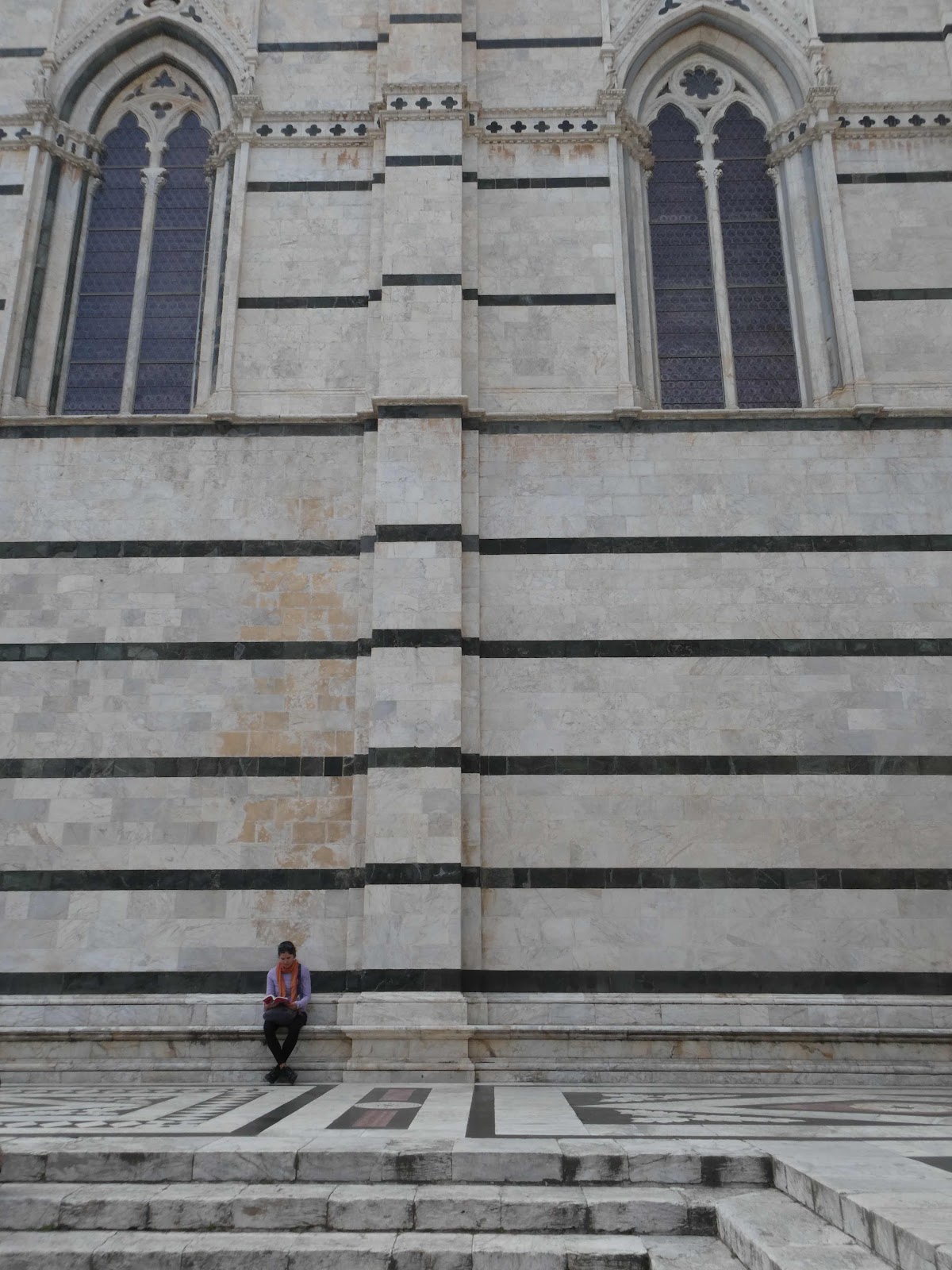 Parvis de la cathédrale de Sienne, jour. Une lectrice.